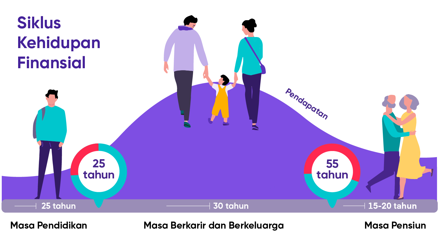 Mari kita lihat ilustrasi di atas. Dari grafik tersebut muncul sebuah tantangan: bagaimana penghasilan yang diperoleh selama 30 tahun dapat cukup membiayai masa hidup mandiri dari usia 25 tahun sampai dengan 75 tahun, atau dengan kata lain, selama 50 tahun? Betul, dari ilustrasi di atas kamu perlu menyadari bahwa ternyata seharusnya pendapatan bulan ini bukan untuk dinikmati sebulan ini saja. Dengan demikian, menyisihkan pendapatan dan melakukan investasi bukan hanya sekedar pilihan melainkan sudah menjadi kebutuhan.