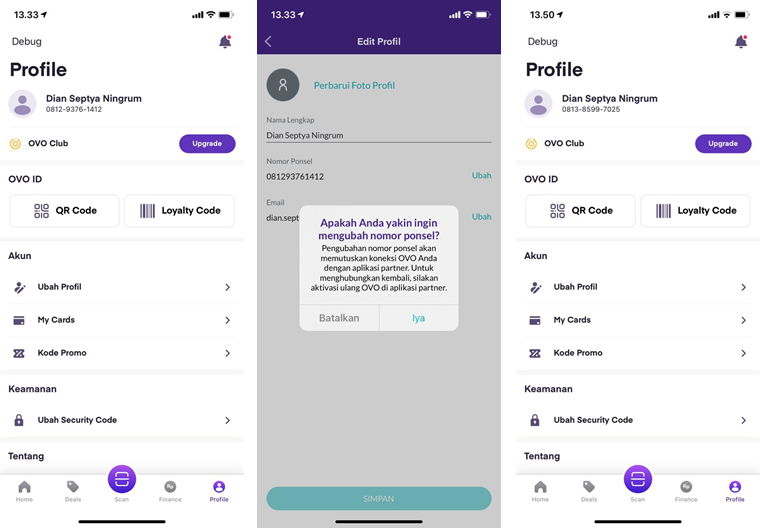 User changes their phone number in the OVO apps, that will broke the AccessToken :