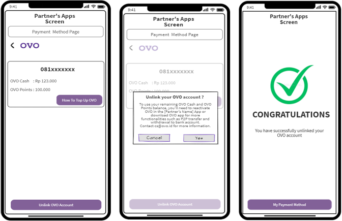 Below is the unlink wording base on OVO compliance team, and partner have to showing the message while the unlink process.