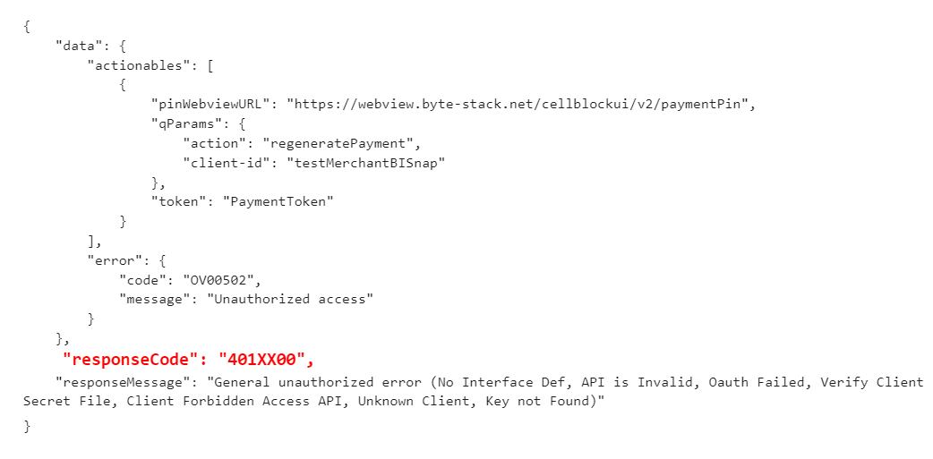 "responseMessage": "General unauthorized error (No Interface Def, API is Invalid, Oauth Failed, Verify Client Secret File, Client Forbidden Access API, Unknown Client, Key not Found)"
