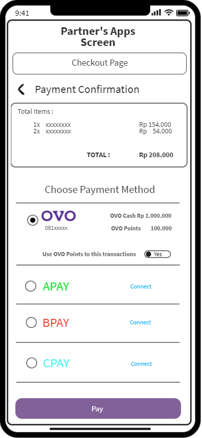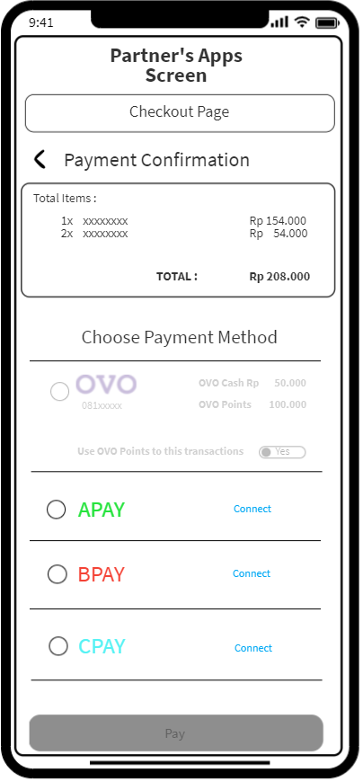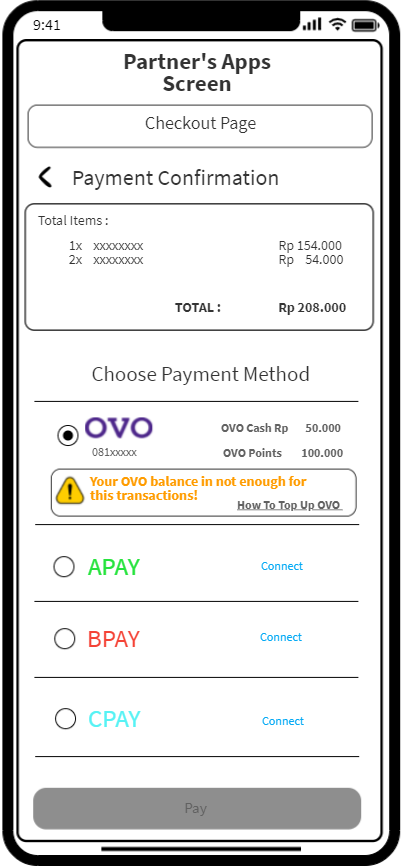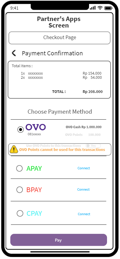 If Partner develop OVO Point as their payment method. Partner need to have 2 UI/UX for payment :