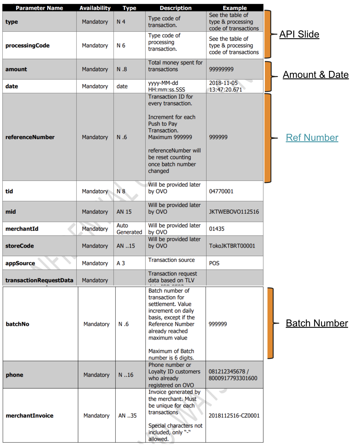 - Merchant need to call reversal automatically at 65s if merchant didn’t get any response (type : 0210) from OVO System within 60s after hit push to pay